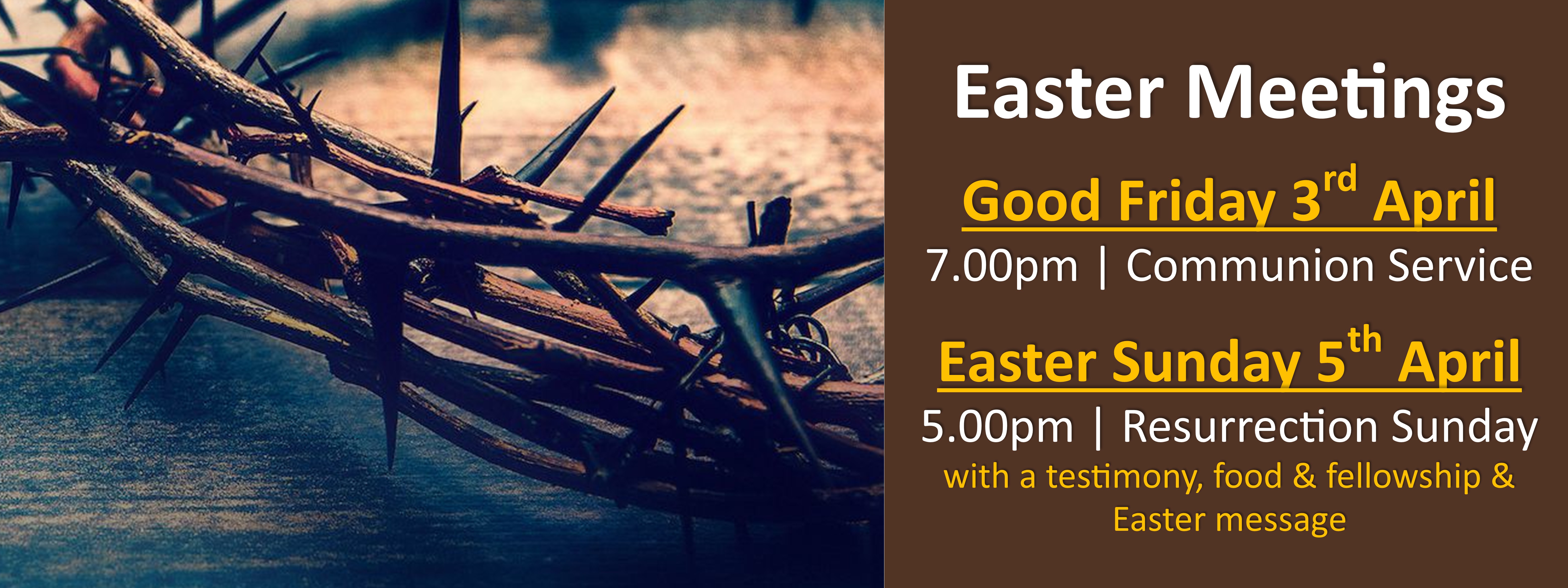 There will be a testimony, Easter message, food & fellowship